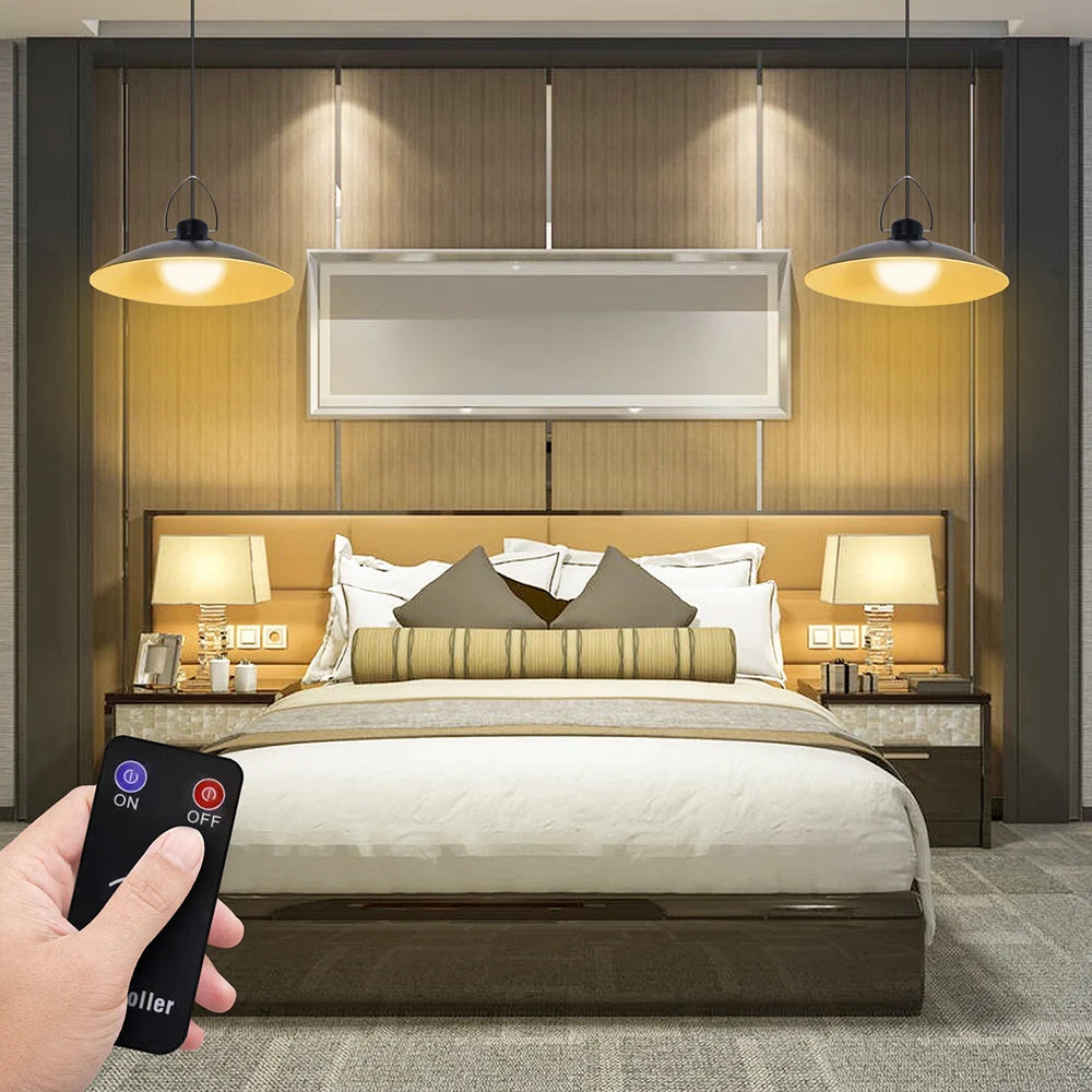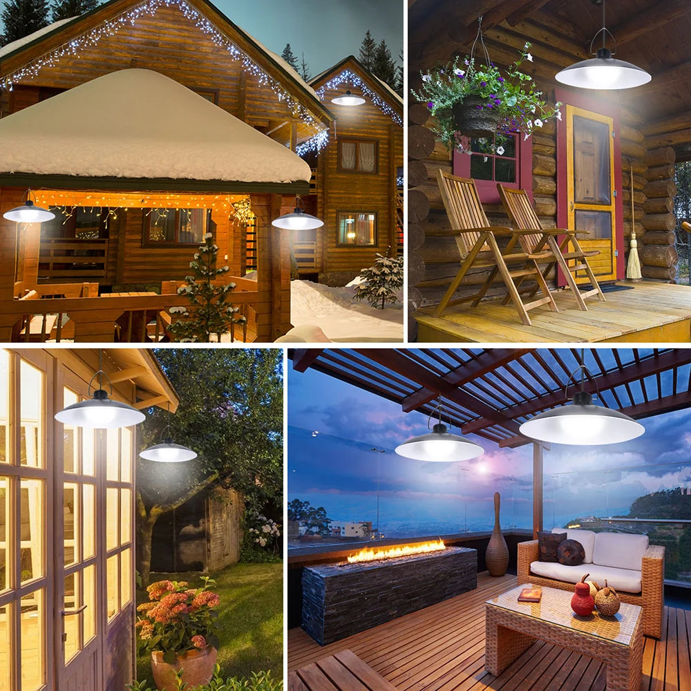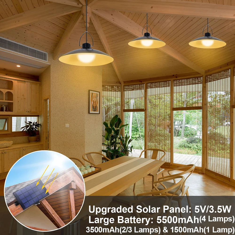 * Upgraded Modern Design with 1/2/3/4 Lamp: The solar panel and the lamp body are designed separately, one solar panel can connect one/two/three/four lamps, which is more practical, and the lamp is a classic design with a black retro metal lampshade. (Note: This solar pendant light has no motion-sensing function.)