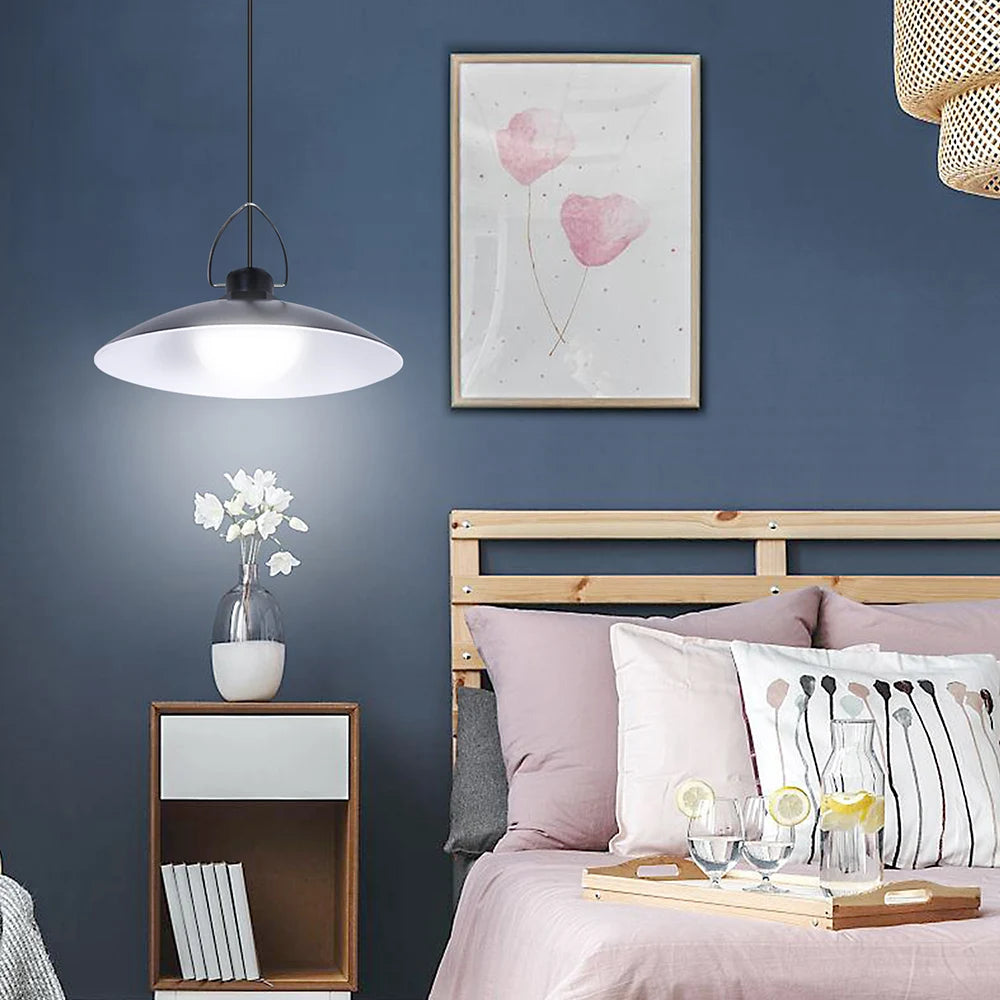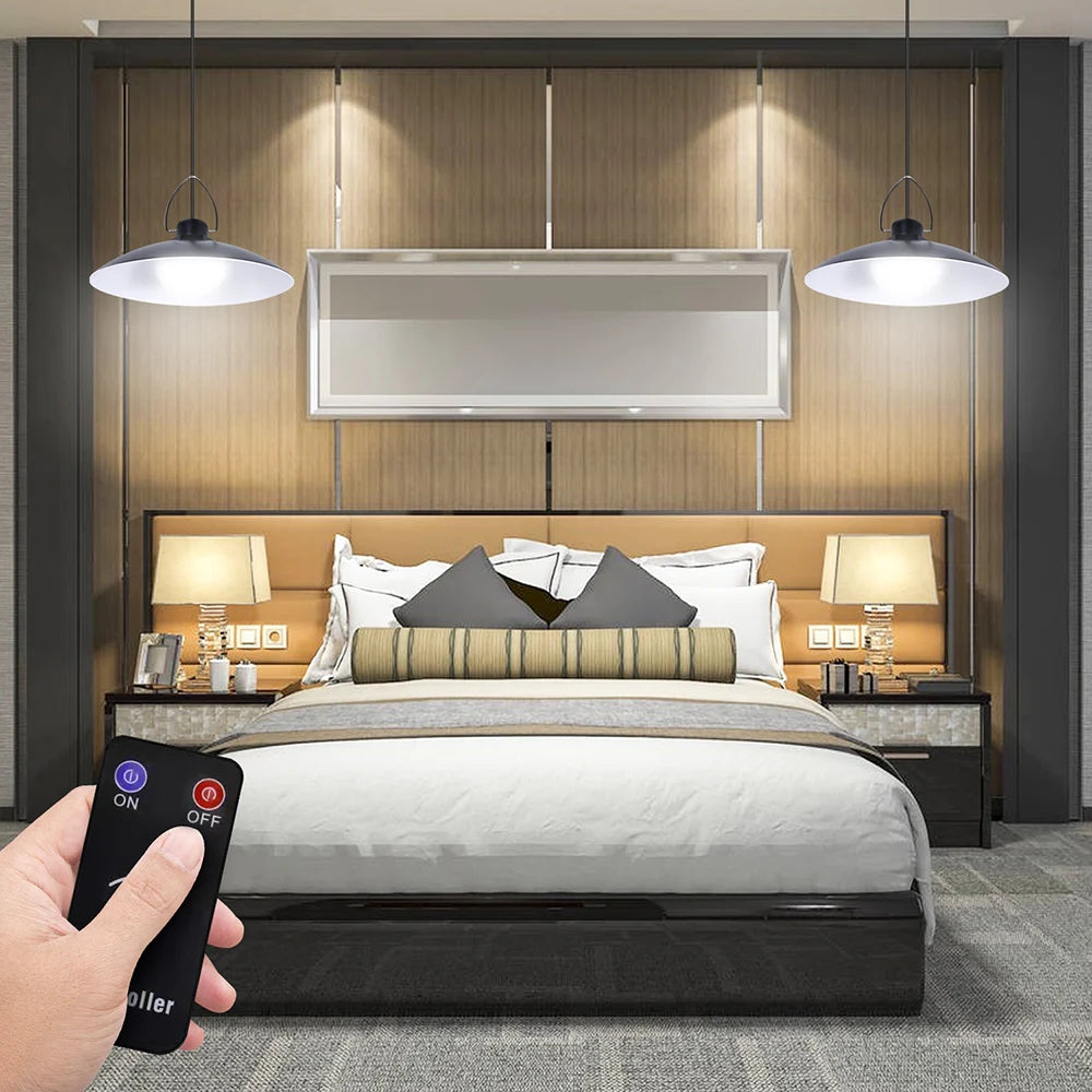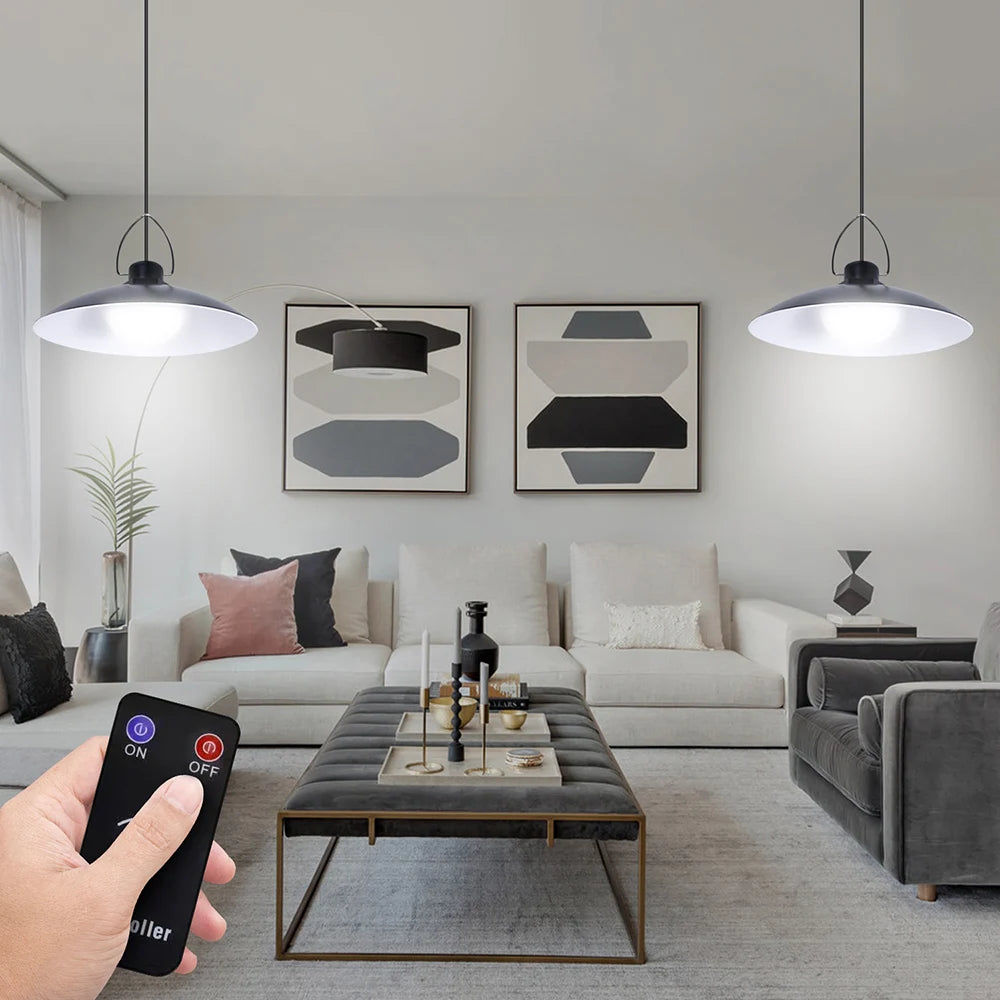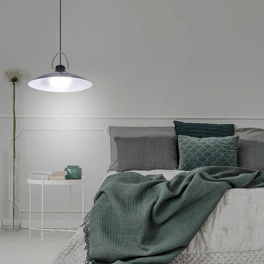 * Upgraded Modern Design with 1/2/3/4 Lamp: The solar panel and the lamp body are designed separately, one solar panel can connect one/two/three/four lamps, which is more practical, and the lamp is a classic design with a black retro metal lampshade. (Note: This solar pendant light has no motion-sensing function.)