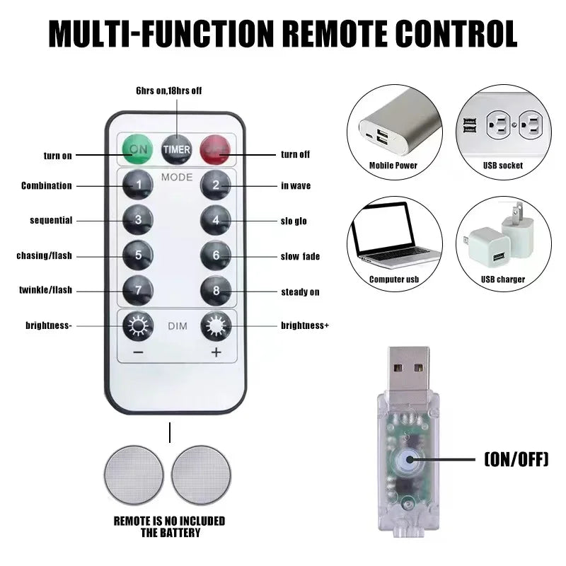 1.The remote control not include batteries,USB has buttons to switch modes.