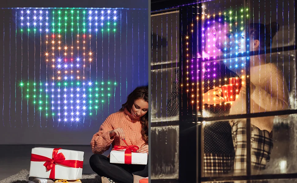 【Programmable Curtain Lighting】 The curtain lights outdoor and indoor, can create lights with any pattern and text through the LED APP. Perfect for writing your lover's name and what you want to say to her during a proposal, wedding, and anniversary