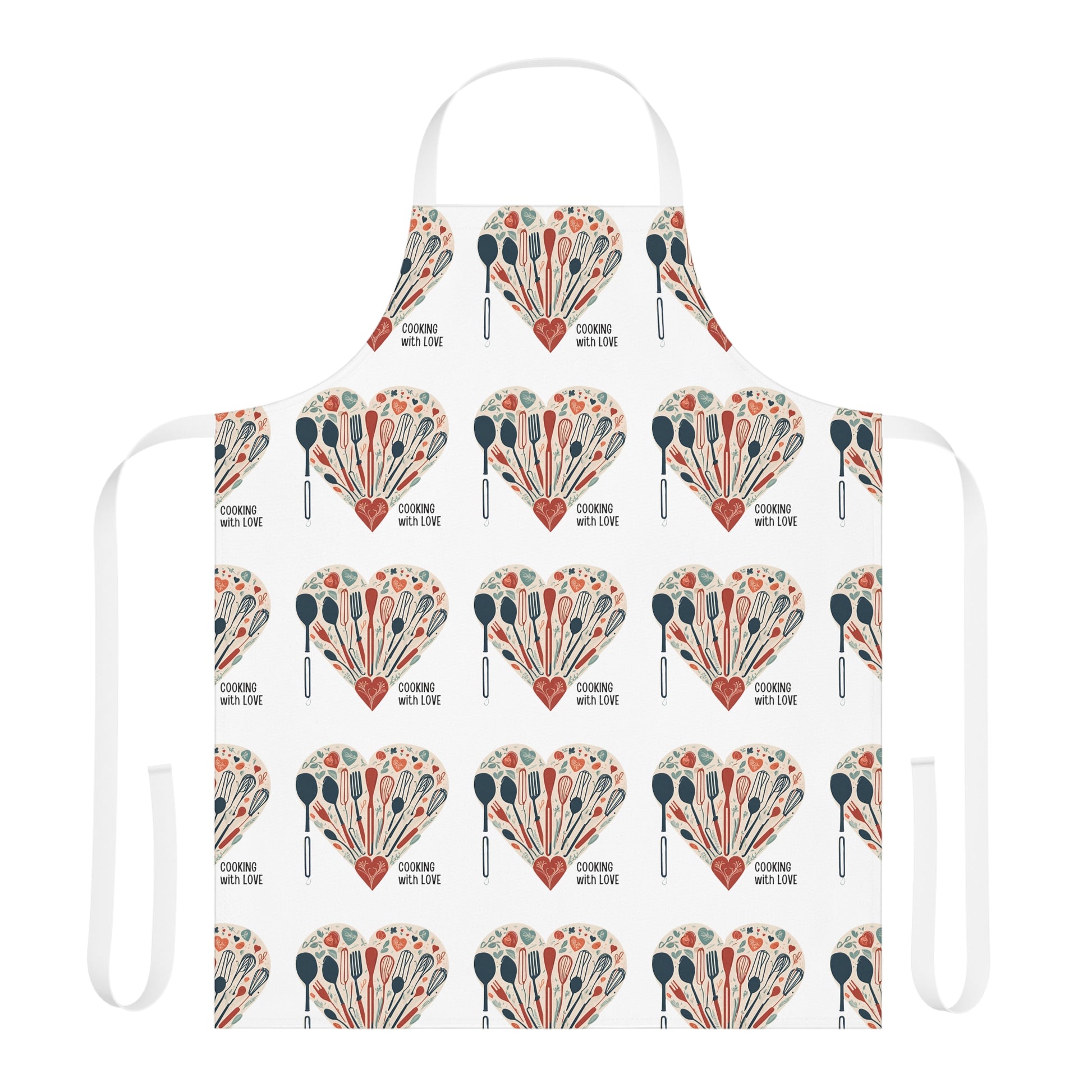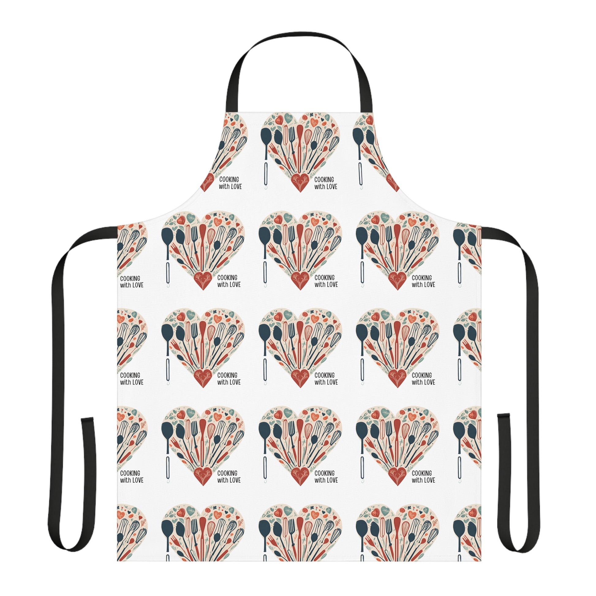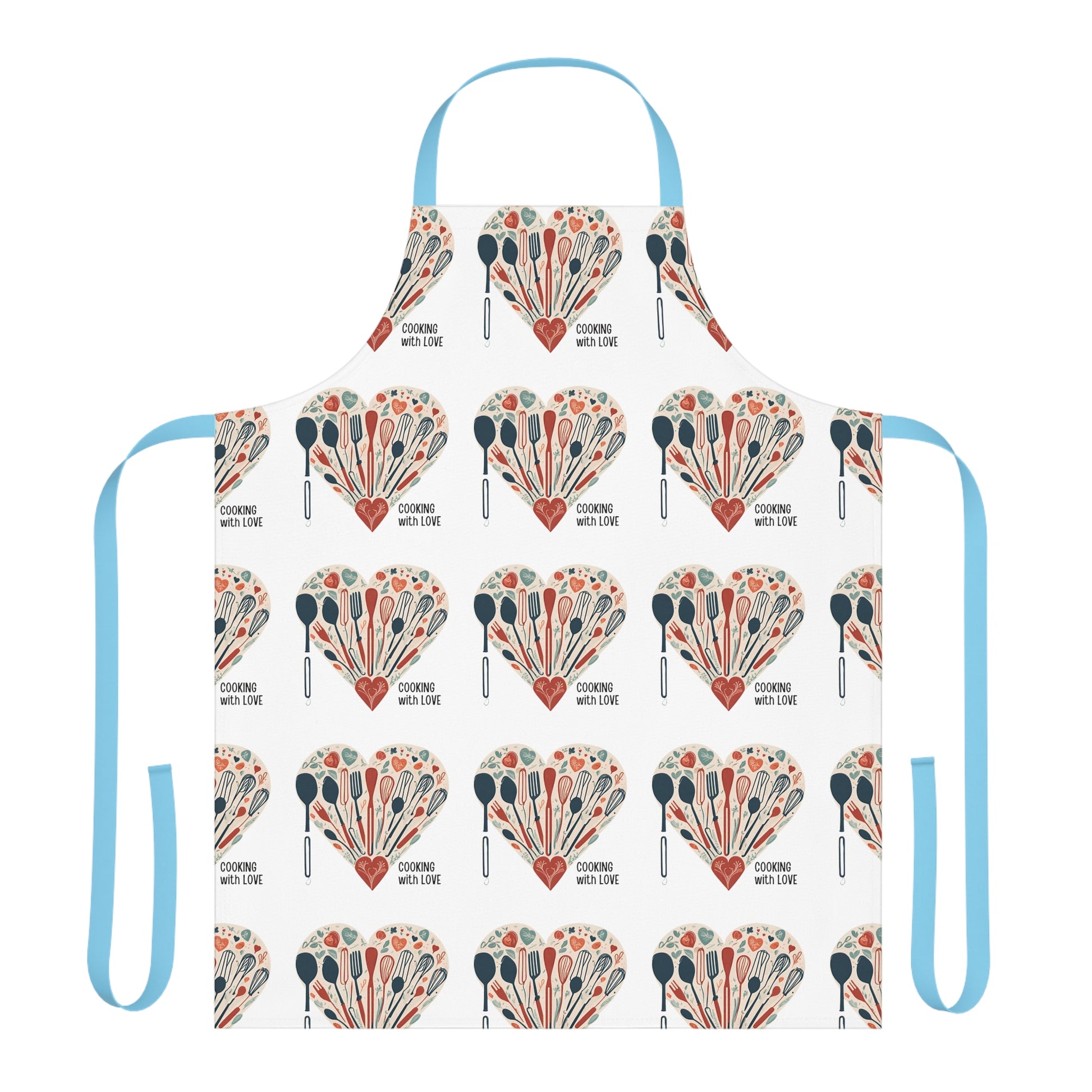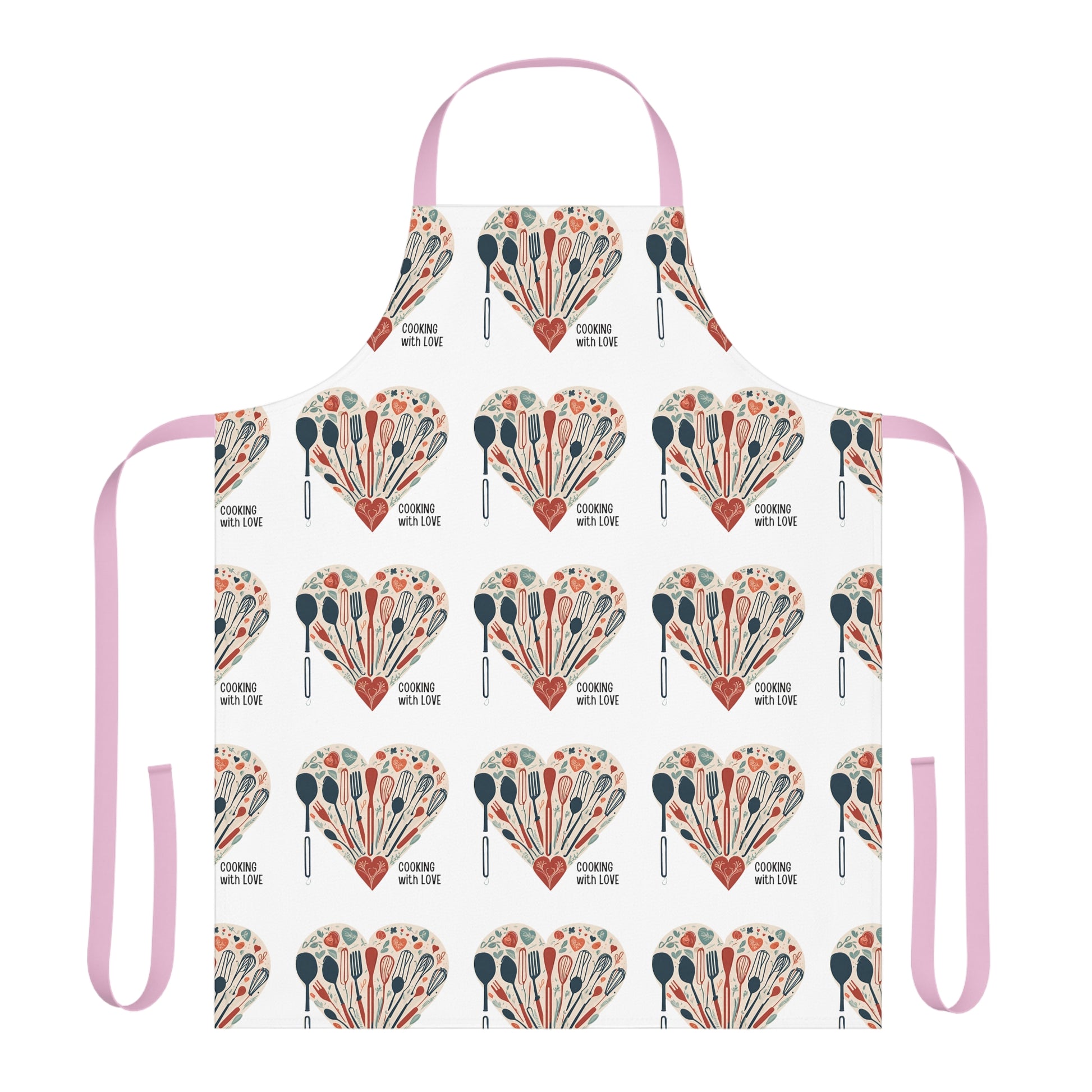 Let the home cook shine in the kitchen with a touch of character, the personalized chef's apron Cooking with Love. This apron comes with a tie-back closure to fit securely, a sewn-in care label for guesswork-free maintenance, and a highly durable 100% polyester canvas construction for top-tier durability. Comes with black, beige, blue, pink, or white strap color, and in one size: 31.5" x 25.6".