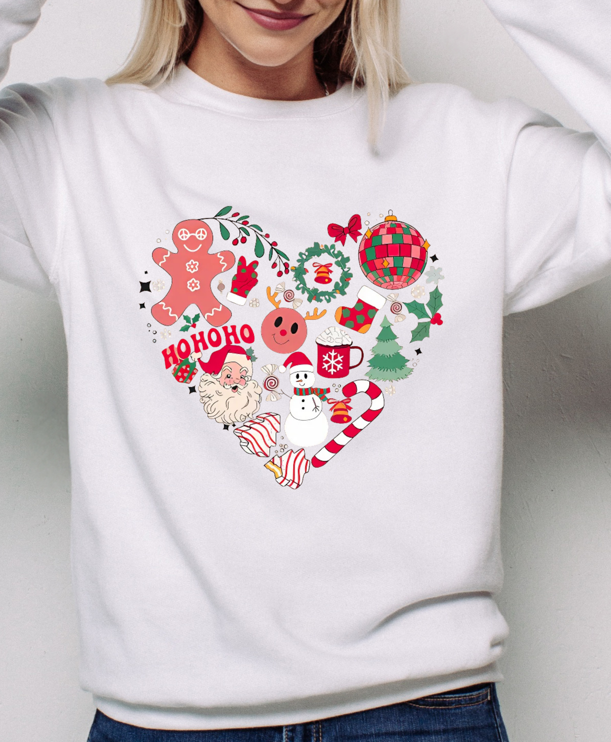 Christmas Heart Sweatshirt, Christmas Love Shirt, Christmas Icons Sweater, Holiday Women Crewneck, Xmas Heart T-Shirt