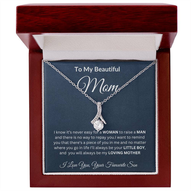 Imagine her reaction when she opens this stunning gift! The Alluring Beauty necklace features a petite ribbon shaped pendant that is sure to dazzle your special someone. Whether it's a birthday or anniversary, make sure to get her a gift she will love for years to come.
