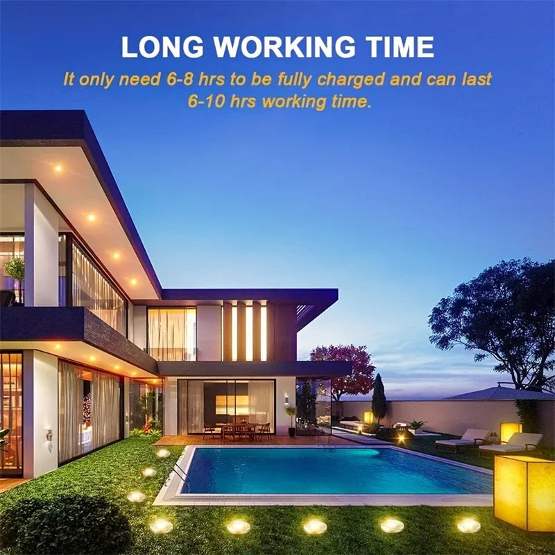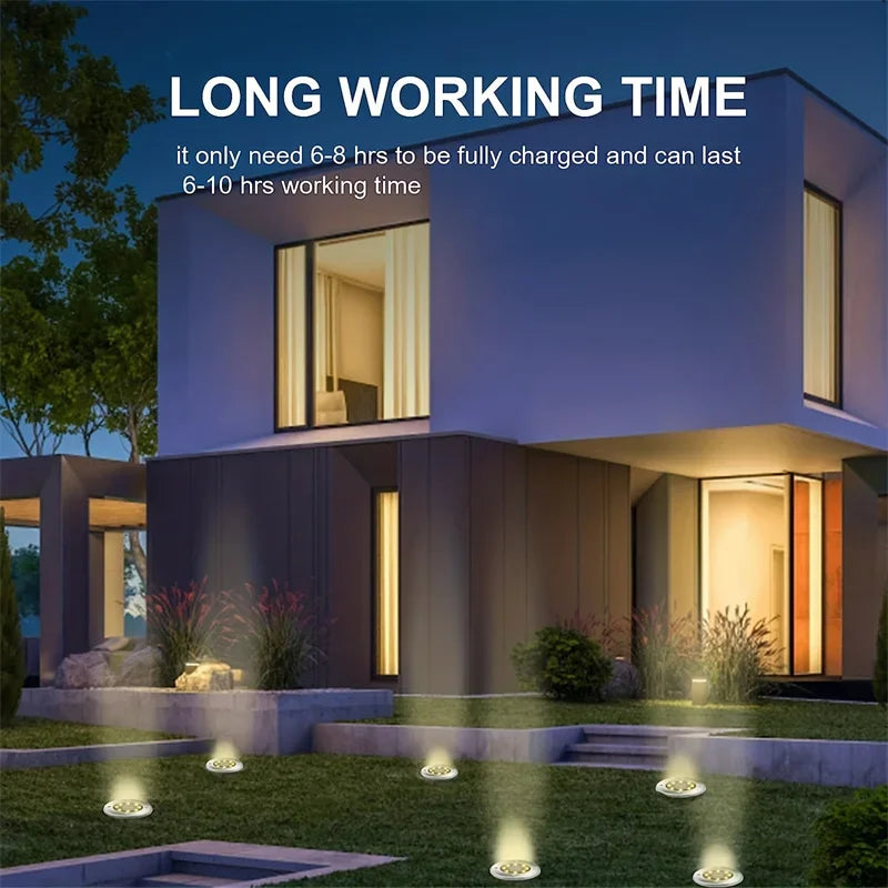 2.Upgraded LED Buried lamps for Garden Lawn Yard:8 LED Bright Solar Path Lights: Unlike other's leds , our solar ground lights consist of 8 LED lights which means producing more light for your path.
