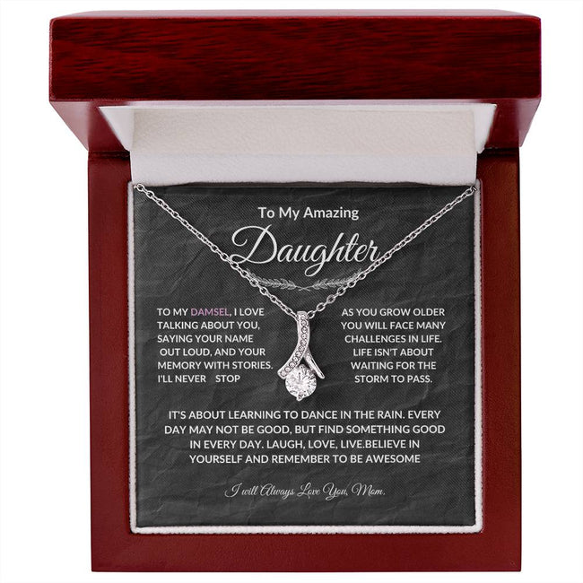 Imagine her reaction when she opens this stunning gift! The Alluring Beauty necklace features a petite ribbon shaped pendant that is sure to dazzle your special someone. Whether it's a birthday or anniversary, make sure to get her a gift she will love for years to come.